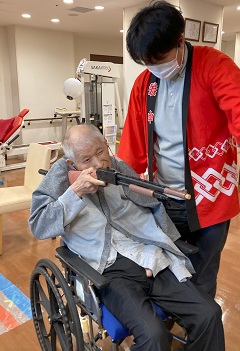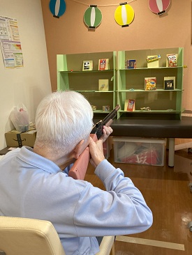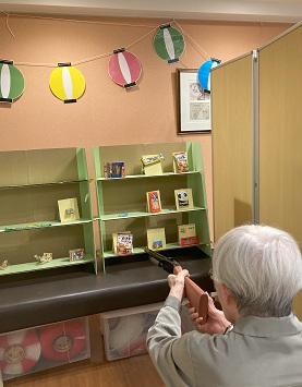 午後になると、1階では、お祭り気分を味わっていただくため、射的、輪投げ、金魚すくいなどのゲームの出し物、ラムネなどの飲み物を用意して楽しんでいただきました♪