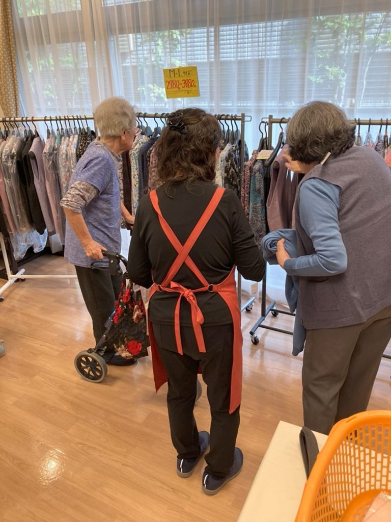 当日は店員さんがご入居者お一人おひとりに付き添い、丁寧に洋服選びをサポートしてくださいました。