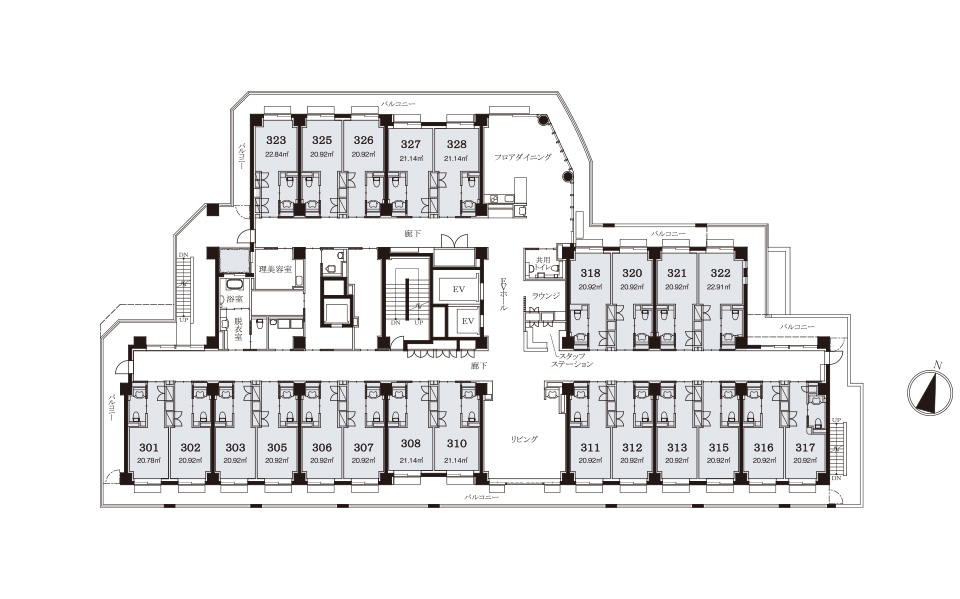 | 居室面積 | 20.78㎡~22.91㎡(最多居室面積 20.92㎡) |