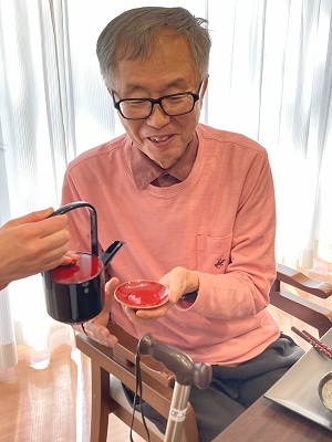 毎年恒例、皆様にお屠蘇を振舞わせていただきました。 病魔を退け、無病息災と長寿を願いながらお注ぎします。 「やっぱりお正...