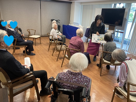 物語の印象的な部分では挿絵などを各入居者様に見せて回りながら丁寧に説明されてました。