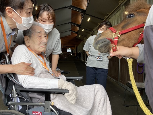 座学を割愛したことでホームと厩舎を2往復して、たくさんの入居者様に体験していただきました!