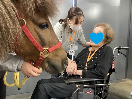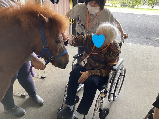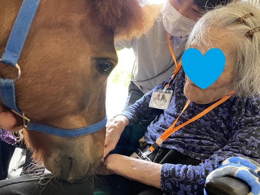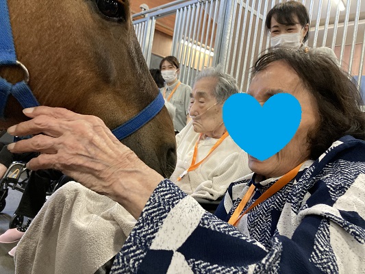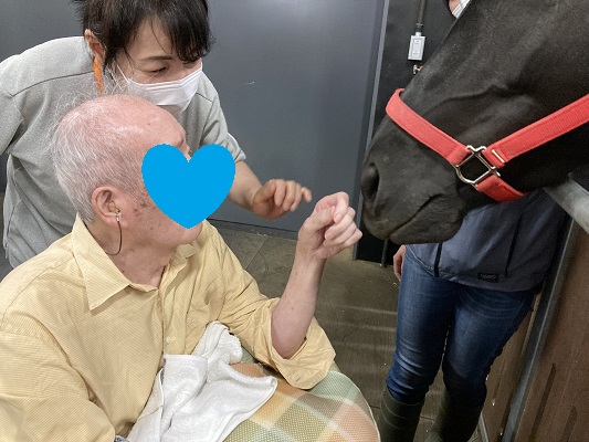 眼を閉じて眠そうにしていた方も馬に触れられて眼もパッチリ!!満面の笑顔になられておりました。