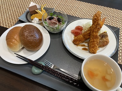 ホームのお食事は朝食/和食か洋食、昼食、夕食/お肉かお魚で事前に選んで頂いております。また、その日の気分などで出前やホーム食のアラカルトを頼むことも自由です。