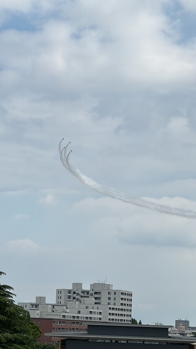 6月29日、川崎市市制100周年記念事業「かわさき飛躍祭」の開催を祝うブルーインパルスによる展示飛行を屋上から見ることができました。