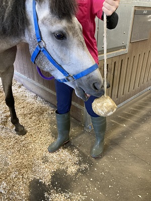 馬が舐めよう(噛もう)としているのは藁とミネラルなどを固めた物で、他に岩塩の塊もありました。馬でも熱中症になるそうで、夏は舐めてミネラルを補給しているのだそうです。へ~~~。面白い!👀