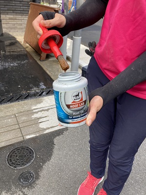 ブラシは蹄の汚れを取る道具、液体は爪用ワックスだそうです。もちろん人生で初めて見ました!