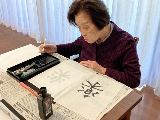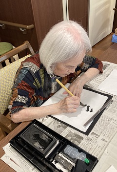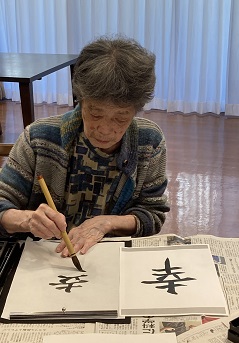 ウェルケアガーデン馬事公苑ではお正月恒例の書初めを行いました。初めて挑戦された方も楽しかったと仰られておりました。