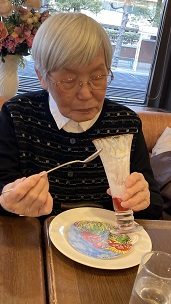 ただいま苺🍓デザートフェア 苺パフェを「美味しいわ。」「美味しいね。」と笑顔で召し上がり、ベリ~スィートな時間を過ごすことができました♪