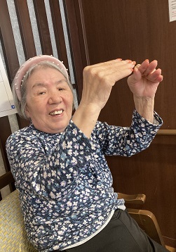 1人のご入居者様が「以前は足を上げることができず靴下を履くこともできなかったけど、ここにお世話になって体操を毎日して~見て!今こうして1人で靴下を履くことができるの♪」と嬉しそうに話してくれました。
