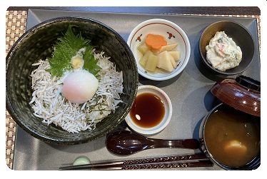 - 釜揚げしらす丼温玉添え