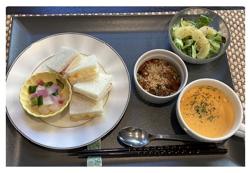 - 卵サラダとハムチーズのサンドイッチ