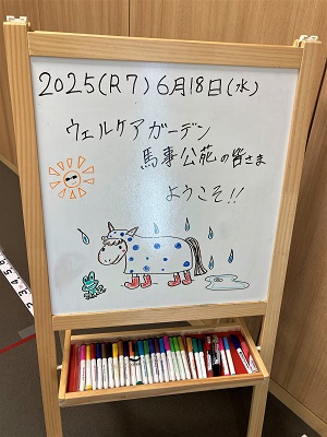 - 職員の方が手描きのウェルカムボードで出迎えてくれます。