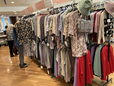 スタッフにも意見を聞いたり、鏡に向かって合わせたりご自身で真剣に悩みながら気に入った洋服を選ばれている姿がとても楽しそうで大好評、大賑わいのお買い物イベントでした。