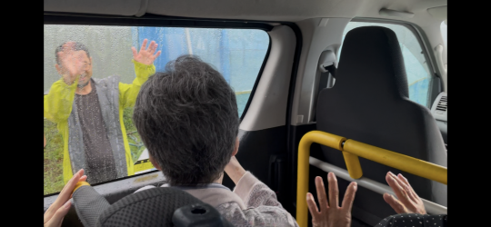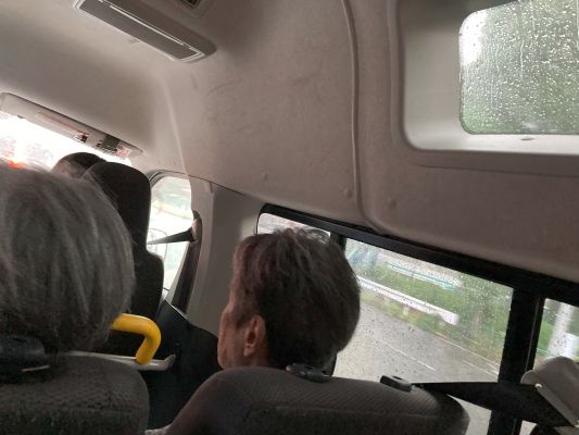 出発する頃に丁度雨が降り始め車内は神妙な面持ちでしたが、そんな中でも「行く頃には晴るわよ、それまで雨が涼しくしてくれるわよ。」と、ご入居者のポジティブな言葉に励まされ半ば挑戦するように向かいました。