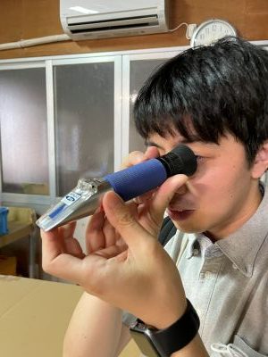 スタッフが覗いている糖度計では葡萄の糖度がなんと22度!(平均18~20)と、とてつもない甘さで食べる手が止まりませんでした。
