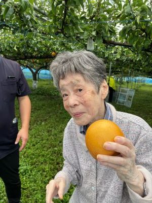 ご入居者より「ここのは全部甘くて美味しいハズレなし!」そして、我々スタッフも決してあきらめることなく可能性を追求し、梨狩りに行くと成果に繋がるという収穫を得ることが出来ました。