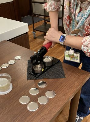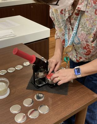 デザインが出来上がったものは専用の機械を使って缶バッジに仕上げていきます。