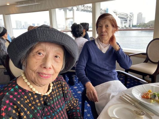 食後はデッキへ。デッキからの眺めは最高で気候も良く、風が気持ちよかったと皆様とても喜ばれていました。