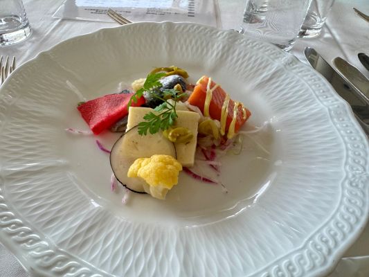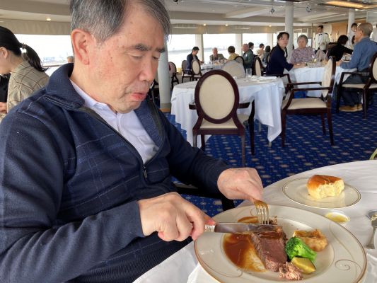 船長さんが「1番眺めの良いお部屋」と仰っていた、船の先頭の最上階のお部屋でお食事です。