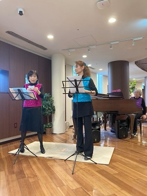 エントランスに美声と音色豊かなピアノが響き渡ります。お2人の歌のハーモニーも素晴らしい!