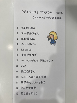 プログラムも作っていただきました。皆様が口ずさめる曲ばかり。エーデルワイスでは実際に花の写真を見せてくださいました。