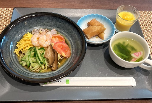 🟦冷やし中華、春巻き、マンゴープリン、ニラの中華スープ🟦 「冷やし中華 はじめました。」でお馴染みの夏の定番メニュー ウ...