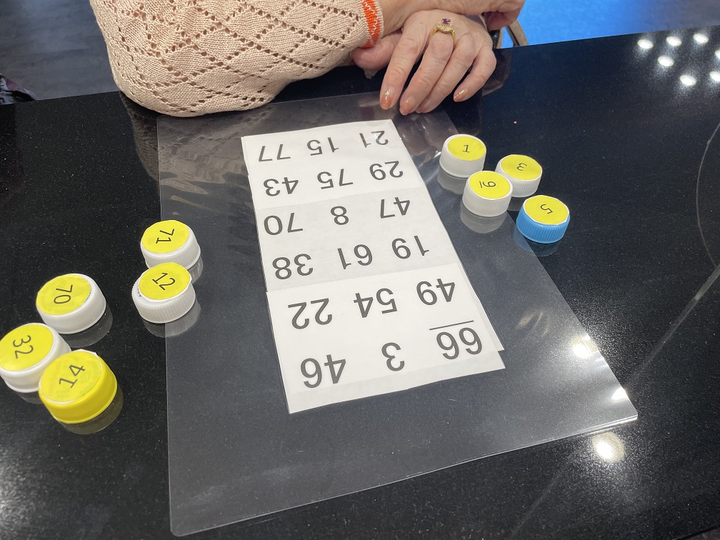 同じ数字の蓋をどんどん置いていきます集中力もつきますこれ、ペットボトルの再利用ご入居者さまがシールを貼って下さいました夕食前のちょっとした時間朝の体操の後などどなたでも楽しめるパズルですおしゃべりしながらあれ…間違っちゃったでも楽しい💕
