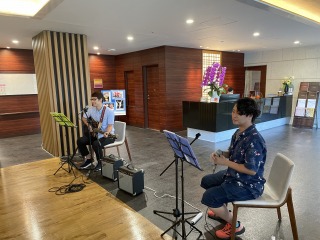 ピンキースノウのぼ&ぼっち2人組の演奏家が今日は深沢に来てくれました何を隠そうのぼ君はウエルケアテラス川口元郷のケアスタッフです川口元郷で愛されているスタッフに深沢でも是非と懐かしい曲の数々に皆様も一緒に歌ってくださいました爽やかな青年たちに元気をもらった午後でした