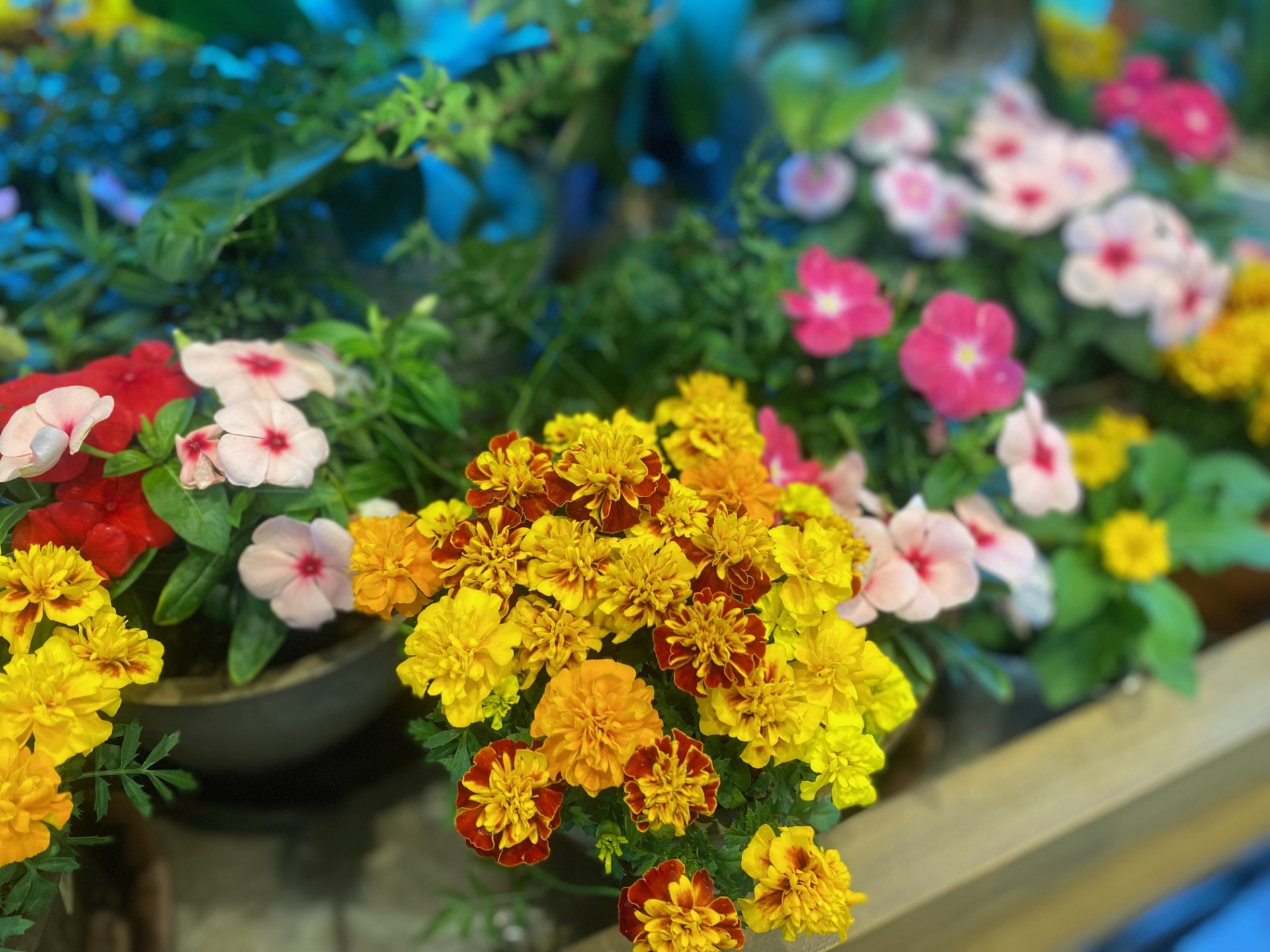 土いじりをしながら・・・ 毎月苗を選んで思い思いに植えていただきますこんな素敵な寄せ植えが皆様をお迎えするお玄関に咲き誇...