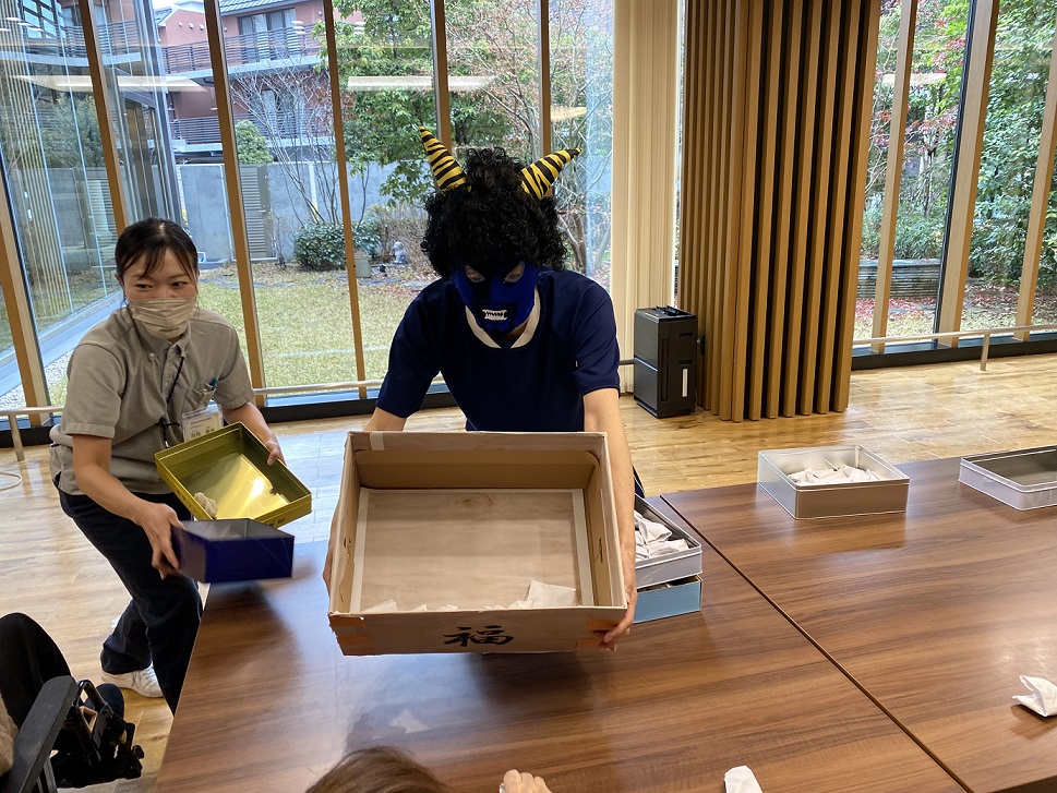 願いを込めて豆をまきました 青鬼チームVS赤鬼チームに分かれて 鬼はスタッフがやってくれてるんでしょう豆を投げるなんてで...