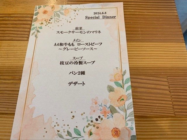 今月のお楽しみ食のメインディッシュは、ローストビーフを召し上がって頂きました。