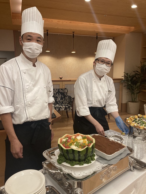 今回は、スイカのフルーツバスケットやソフトクリームなど夏のスイーツもお楽しみいただきました。