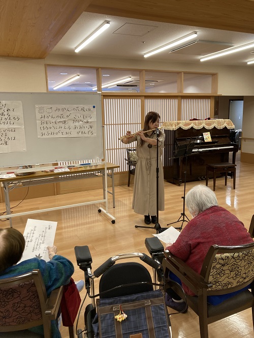 「紅葉」、「ふるさと」などのフルート演奏や、「みかんの花咲く丘」や
