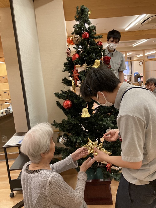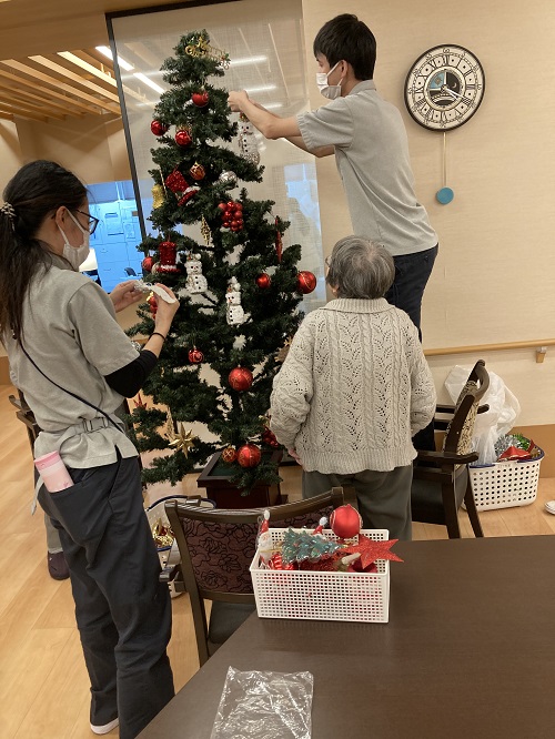 ご入居者の皆様にも飾りつけをお願いして、素敵なツリーが完成しました。