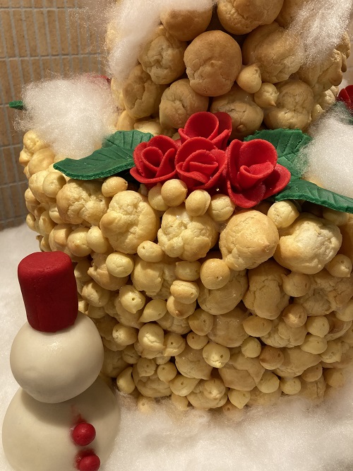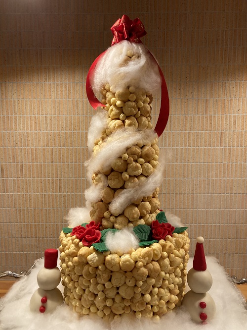 クロカンブッシュのタワーは厨房のシェフから、皆様への観賞用のプレゼントです。