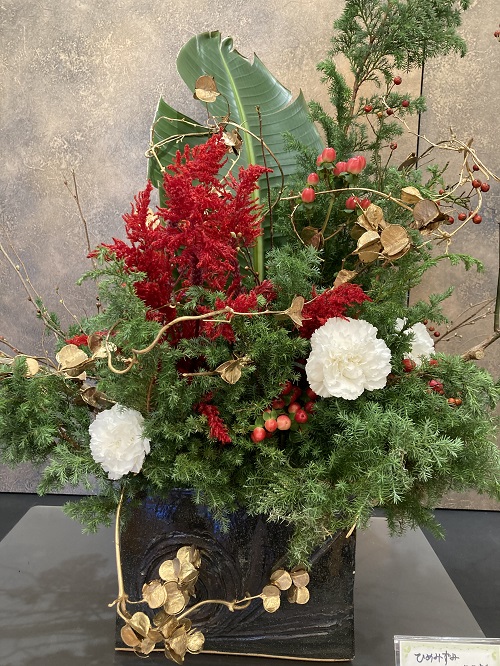 エントランスもこの時期らしい華やかな生花です。