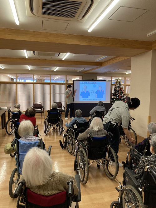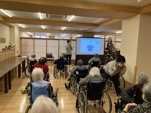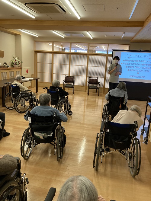 アニマルトレーニングとは、動物や昆虫などの動きを真似た様々な動作を行うエクササイズで、普段慣れない動きで脳を刺激し、認知機能の低下を予防します。笑顔やコミュニケーションが生まれるので、楽しく続けられるのが特長です。