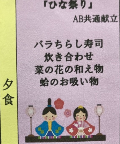 3月3日のお夕食はバラちらし寿司を召し上がっていただきました。