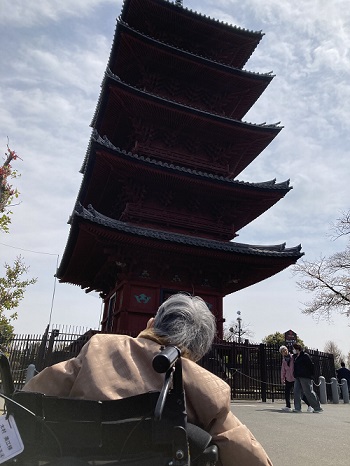 久しぶりの晴天の中、本門寺や呑川沿いに満開のお花見に外出しました。
