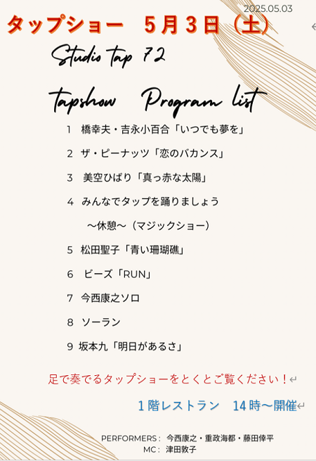 タップ体操の今西先生率いるメンバーにて、タップショーが開催されました。