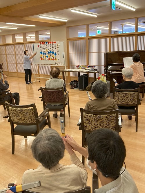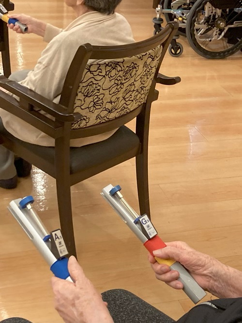 皆様で、色分けされたパートを涼しげな音色のトーンチャイムで演奏をしていただきました。
