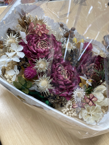 とても華やかな楽しいアレンジメントをお楽しみいただきました。