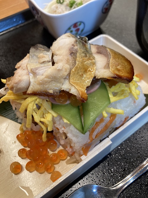 「花想い~笑顔ひろがるハレの日寿司」、4月は京都府の丹後地方の郷土料理のばら寿司です。 甘辛く煮付けた鯖をそえたお寿司や...