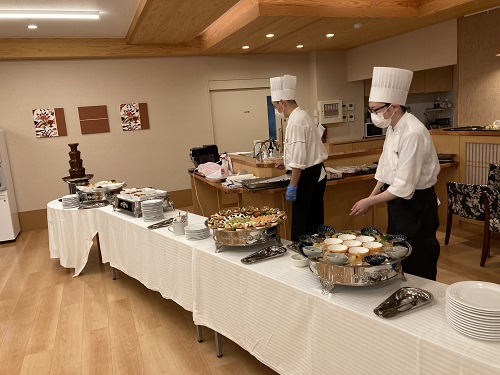 恒例のスイーツバイキング、毎回大好評をいただいております。 チョコレートファウンテンや冷たい和菓子、色とりどりの洋菓子を...