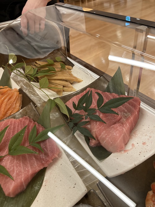 今回のお楽しみ会のお食事は、寿司職人が目の前で握るお寿司をお楽しみいただきました。 赤身はばちまぐろ、中トロは本マグロを...