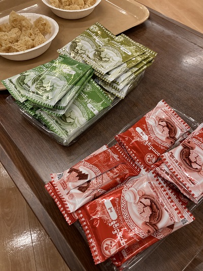 当施設にはミャンマー人のスタッフが数名在籍しております。 お国のお菓子を、民族衣装で紹介させていただきました。 どこに位...