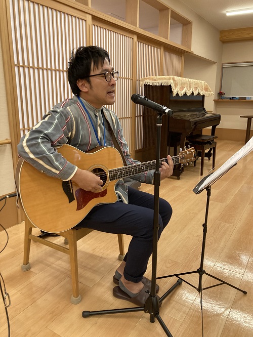 とても素敵な歌声のカドアキさんのギター演奏に合わせて、どなたもご存知な歌を皆様で合唱しました。