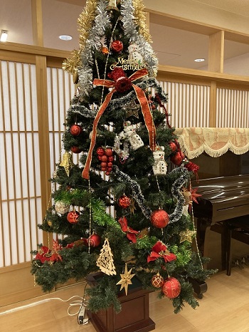 ご入居者の皆様にも飾りつけをお願いして、素敵なツリーが完成しました。 クロカンブッシュのタワーは厨房のシェフから、皆様へ...