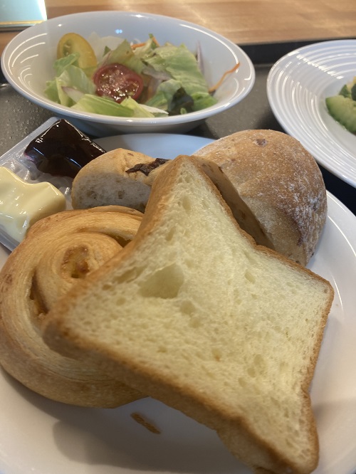 鶏肉のディアブル風 サラダ 野菜スープ 数種のパンは食べ放題で召し上がっていただきました。